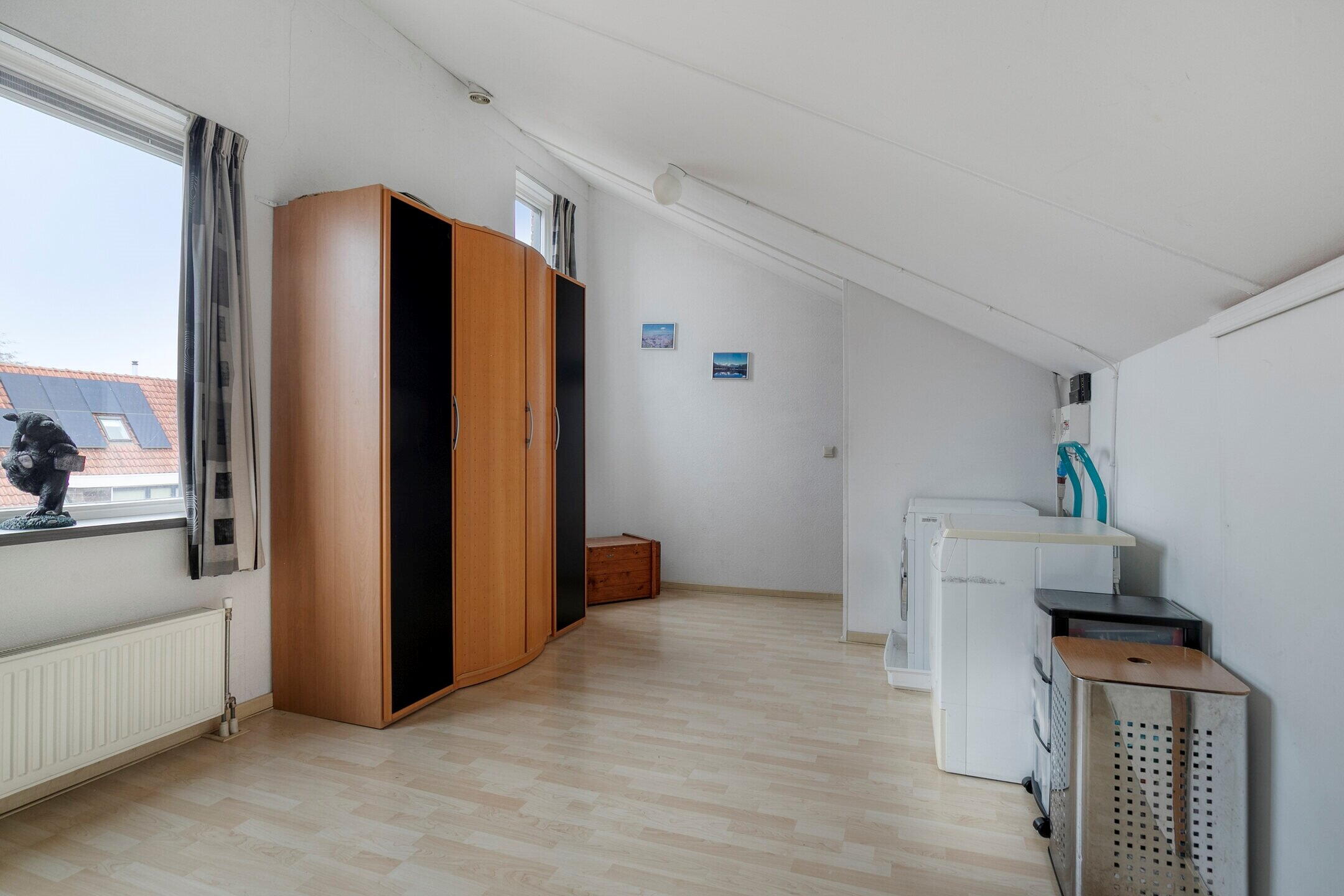Via de trap komt u op de ruime zolder u kunt hier nog doen wat u wilt, misschien uw kantoor op zolder? Of een hobbyruimte? Of een 4e slaapkamer? Ook vindt u hier tevens een behoorlijke bergruimte achter de knieschotten en de WTW-unit.